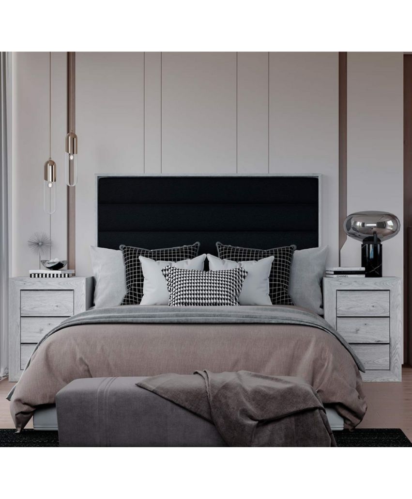 El dormitorio de matrimonio completo Artic/Negro es la combinación perfecta de elegancia y funcionalidad para tu hogar.Posibilidad de un cabecero, dos mesitas de noche, sinfonier y espejo, todo diseñado en tonos artic y negro. Cada pieza ha sido fabricada con materiales de alta calidad, garantizando durabilidad y resistencia, mientras que su diseño moderno aporta una estética sofisticada y contemporánea a cualquier dormitorio. Con un acabado impecable, este dormitorio completo se convierte en la elección ideal para transformar tu espacio en un refugio elegante y acogedor.